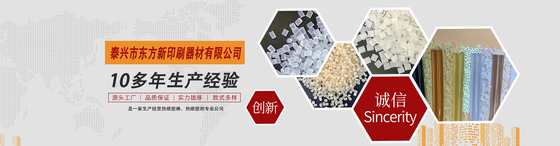 泰興市東方新印刷器材有限公司是專一生產(chǎn)綠色環(huán)保型印刷裝訂書刊熱熔膠,封箱包裝熱熔膠,吸管膠,鞋材熱熔膠,冰箱熱熔膠,熱熔膠棒,地毯背膠等。產(chǎn)品具有快速粘接、耐老化、強(qiáng)度高、熱穩(wěn)定性好、無毒害等優(yōu)點(diǎn),廣泛用于無線膠訂、自動(dòng)化封箱,飲料吸管粘結(jié)接,電子電器、工藝品、玩具、家具等領(lǐng)域,公司與多家科研機(jī)構(gòu)建立了緊密的戰(zhàn)略合作關(guān)系,質(zhì)量達(dá)到先進(jìn)水平,產(chǎn)品已銷往全國(guó)30多個(gè)省市地區(qū),并出品到東南亞多個(gè)國(guó)家和地區(qū)。    公司堅(jiān)持“誠(chéng)信為本,貼心服務(wù)”為廣大顧客提供優(yōu)質(zhì)產(chǎn)品,董事長(zhǎng)兼總經(jīng)理黃衛(wèi)東先生攜全體員工,竭誠(chéng)歡迎各界朋友光臨指導(dǎo)、洽談合作、共贏同發(fā)展。    Taixing Dongfang New Printing Equipment Co., Ltd. specializes in the production of green and environmentall…